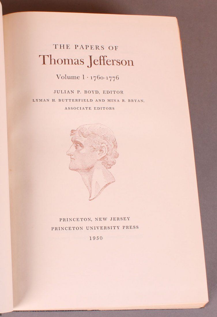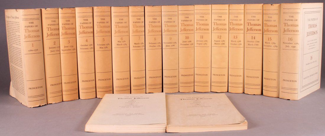 [Jefferson, Thomas]. THE PAPERS OF THOMAS JEFFERSON. 18 Vols: Vols 1-16 + Indexes to Vols 1-6 and 7-12. Princeton Univ. Pr., 1950-1961. 1st printing.