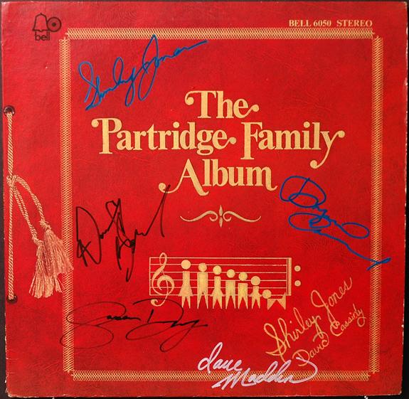The Partridge Family Album - Signed Album Cover. Hand signed by Shirley Jones, David Cassidy, Susan Dey, Danny Bonaduce, and Dave Madden (he played the manager). Jones and Cassidy signed in blue felt-tip pen; Dey and Bonaduce in black felt-tip pen, and Madden in white. Some edge wear to cover. Album is present. The album was released by Bell Records, a subsidiary of Columbia Records, in 1970. The album rose to #4 on the Billboard chart, and the song "I Think I Love You" went to #1. "The Partridge Family" was a show about a widow (Jones) who toured with her musical brood; it aired from 1970-74 on ABC. With a certificate of authenticity from forensic document examiner Christopher L. Morales.