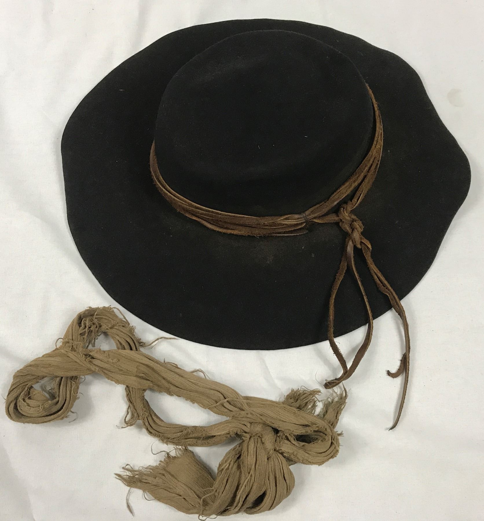 Original hat and scarf worn in the production of The Patriot (2000), the epic historical fiction war movie where, Peaceful farmer Benjamin Martin is driven to lead the Colonial Militia during the American Revolution when a sadistic British officer murders his son.