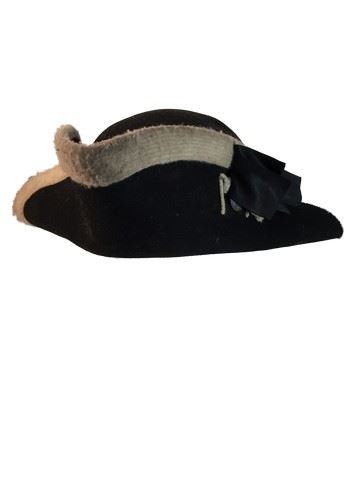 The Patriot (2000) - Tricorn hat as worn by British Enlisted Soldiers, on-screen, in the 2000 film "The Patriot". Black portion of hat is felt, with decorative cotton embroidery around the top. Cockade (ribbon and button) on left side of hat with nylon rope around the top of the hat. Only a few more of these remaining!