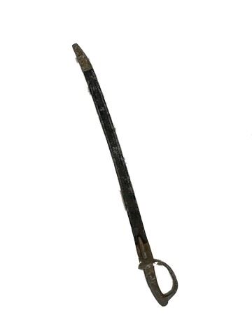 The Patriot - screen used, metal sword and sheath all in one. Painted black and gold to look like a real sword with an attached clip at the hilt. The soldiers wore this inside their jackets during battle scenes (approx. 27" long). This incredible memorabilia comes direct from the Debbie Reynold's archive collection. Debbie Reynolds and Todd Fischer purchased and acquired this amazing collection decades ago from the MGM auction, 20th Century Props auctions, Christie's auctions, Planet Hollywood and numerous additional auctions. Debbie Reynolds then opened Hollywood Central Props where many of these props and costumes were used in the making of feature films and television shows. This auction also marks the beginning of a long-term collaboration with The Debbie Reynolds’ Archives and her son Todd Fisher with a collection of props, costumes and photos including an ensemble from CHOCOLAT, ROMEO AND JULIET, MISSISSIPPI, V FOR VENDETTA, THE PATRIOT, THE LAST SAMURAI and more! Item may vary slightly from photo.