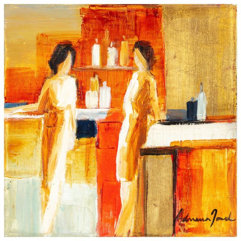 "The Perfume Shop" is an original acrylic painting on stretched canvas by Adriana Naveh, hand signed by the artist. Includes Letter of Authenticity. Measures approx. 12" x 12" (image).