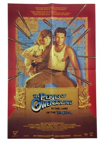 The Perils of Gwendoline in the Land of the Yik-Yak (Vestron Video, 1985). One Sheet. Starring: Tawny Kitaen and Brent Huff. There are fold lines and creases. Very Fine. (24" X 36").