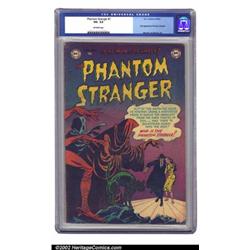 The Phantom Stranger #1 (DC, 1952) CGC VG- 3.5 Off-white pages. Designated "scarce" by Overstreet, this in-demand issue features the very first appearance of the Phantom Stranger with art by Murphy Anderson. Tough to find in any grade, this solid copy may be the only one you'll see for sale for a long time. Overstreet 2002 GD 2.0 value = $191; FN 6.0 value = $573. Important notice: We expect to be auctioning lots at the rate of 200-250 per hour. Sometimes eBay Premier live bid software cannot keep up with that pace, so we strongly recommend that you place a realistic proxy bid now as insurance to avoid disappointment. Also please note that all Heritage/CAA lots purchased through eBay Premier carry a 20% Buyer's Premium. Please make sure you read the Terms and Conditions.