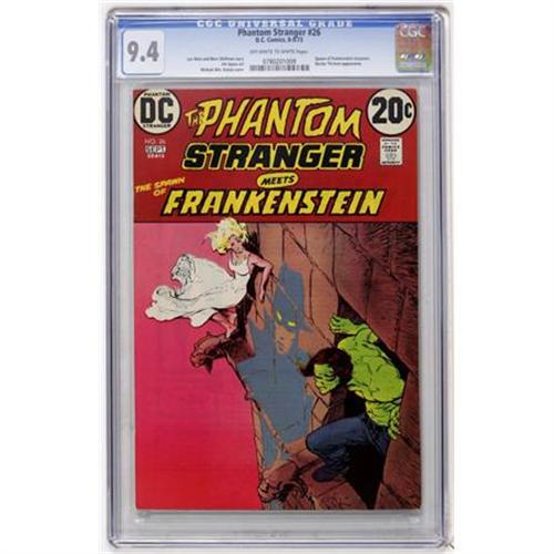 <B>The Phantom Stranger #26 (DC, 1973) CGC NM 9.4 Off-white to white pages.</B></I> Spawn of Frankenstein crossover. Doctor Thirteen appearance. Jim Aparo art. Mike Kaluta cover. Overstreet 2007 NM- 9.2 value = $32. CGC census 10/07: 6 in 9.4, 8 higher. <I> From the Fantastic Frank Collection.</B></I><BR><BR><b>Shipping:</b> Comics - Slabbed (certified) (<a target="_blank" href="http://www.heritageauctions.com/common/shipping.php">view shipping information</a>)