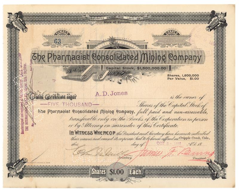 Stock certificates from the United States and other countries around the world. Items offered cover a wide variety of collecting topics including automotive, railroads, mining, autographed and much more.