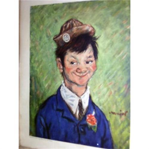 Antique fine art print published by the New York Graphic Society fine art publishers. This copyrighted litho print of the Philosopher's Heir is in excellent condition with a small water spot in the upper right hand corner and is framed under glass in the original issue pickled oak frame. The order number is written in pencil on the back inside is 904. The number 4939 is printed in the upper corner.