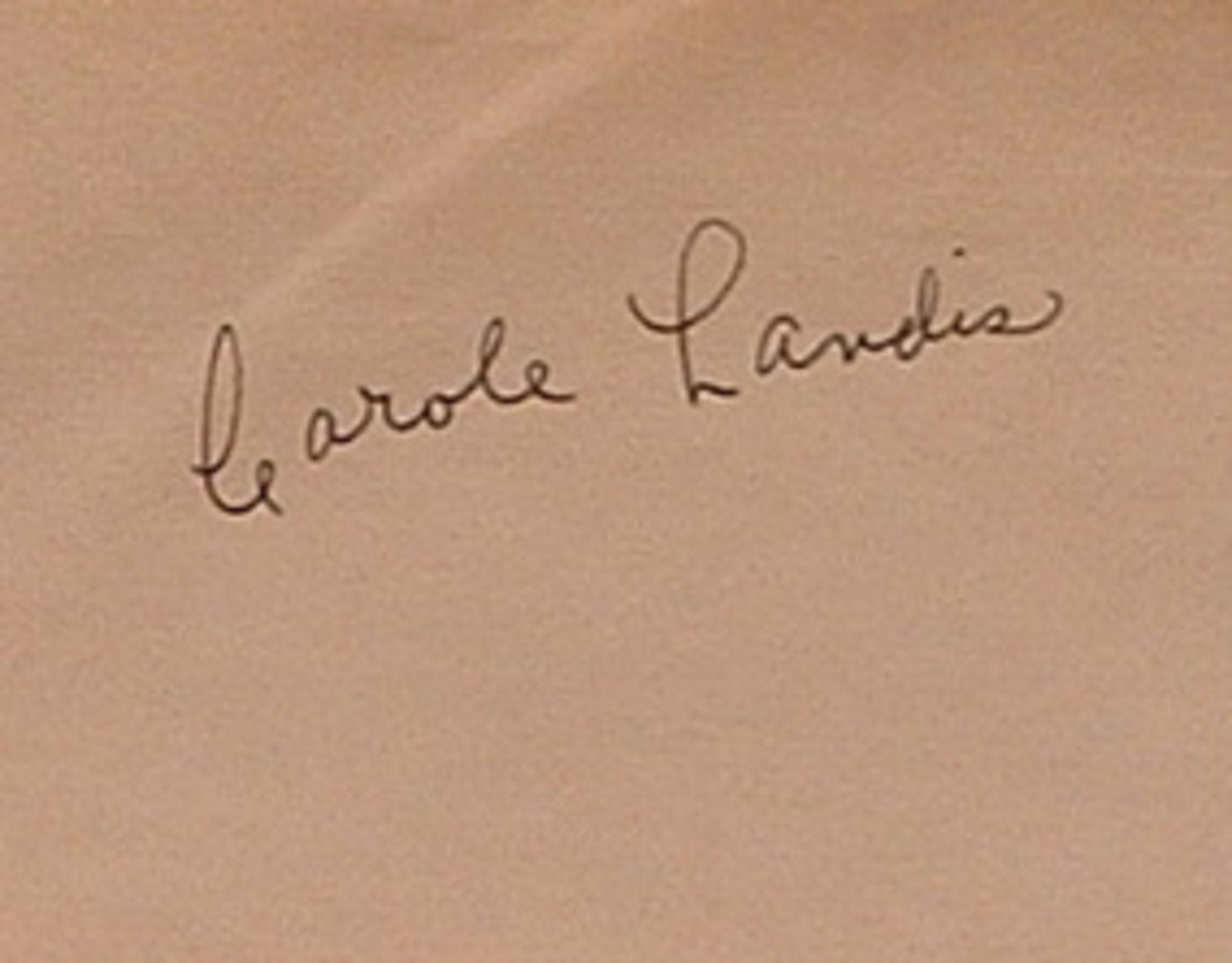 Carole Landis 5 1/2 in. by 4 in. signature slip