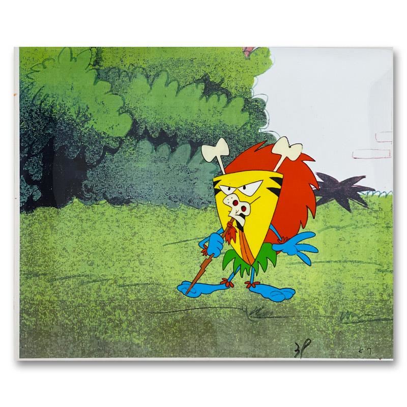 This is original production art used in the classic animated series The Pink Panther Show composed of a hand painted production cel, a printed background, and production sketch. Includes includes letter of authenticity. Do to the age of this piece, there may be some minor flaws, but it is in overall good condition. Measures approx. 12.5" x 10.5" (background).