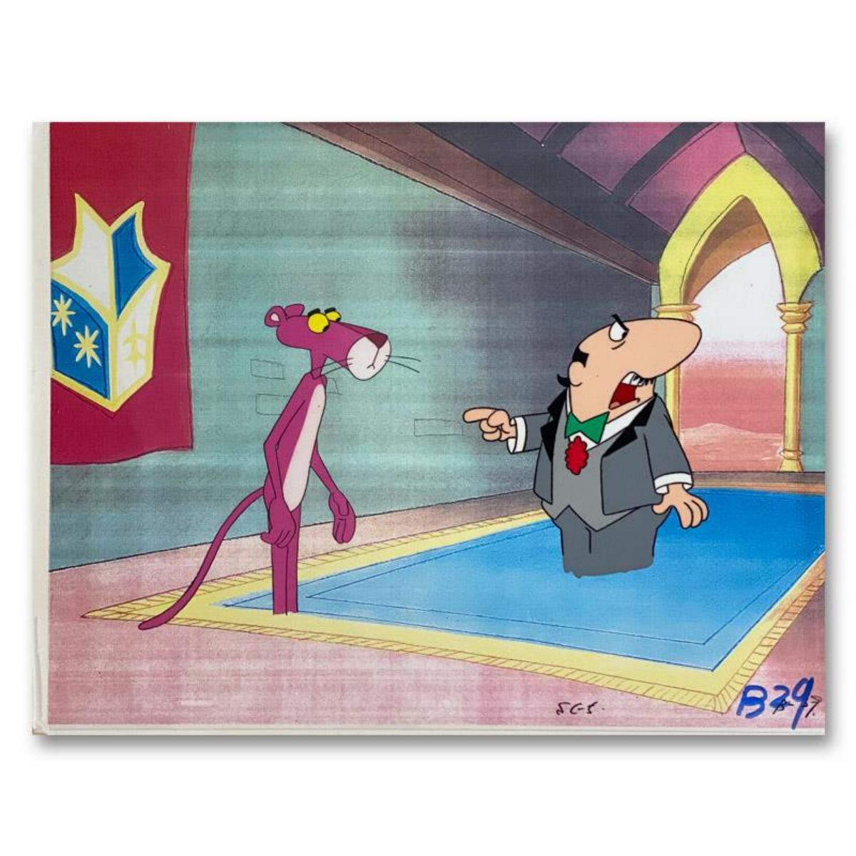 This is original production art used in the classic animated series The Pink Panther Show composed of a hand painted production cel, a printed background, and production sketch. Includes includes letter of authenticity. Do to the age of this piece, there may be some minor flaws, but it is in overall good condition. Measures approx. 12.5" x 10.5" (background). Reference #: 242230