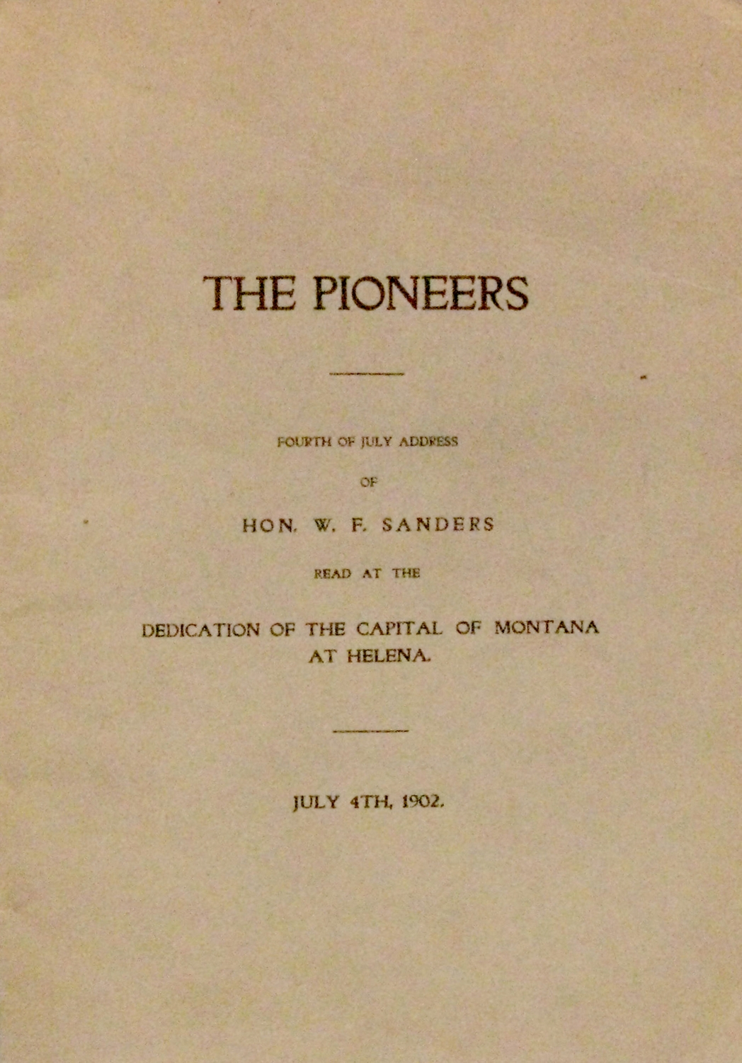 read at the Dedication of the Capital of Montana at Helena, July 4th, 1902, 23 pp, original wraps in fine cond, very scarce.
