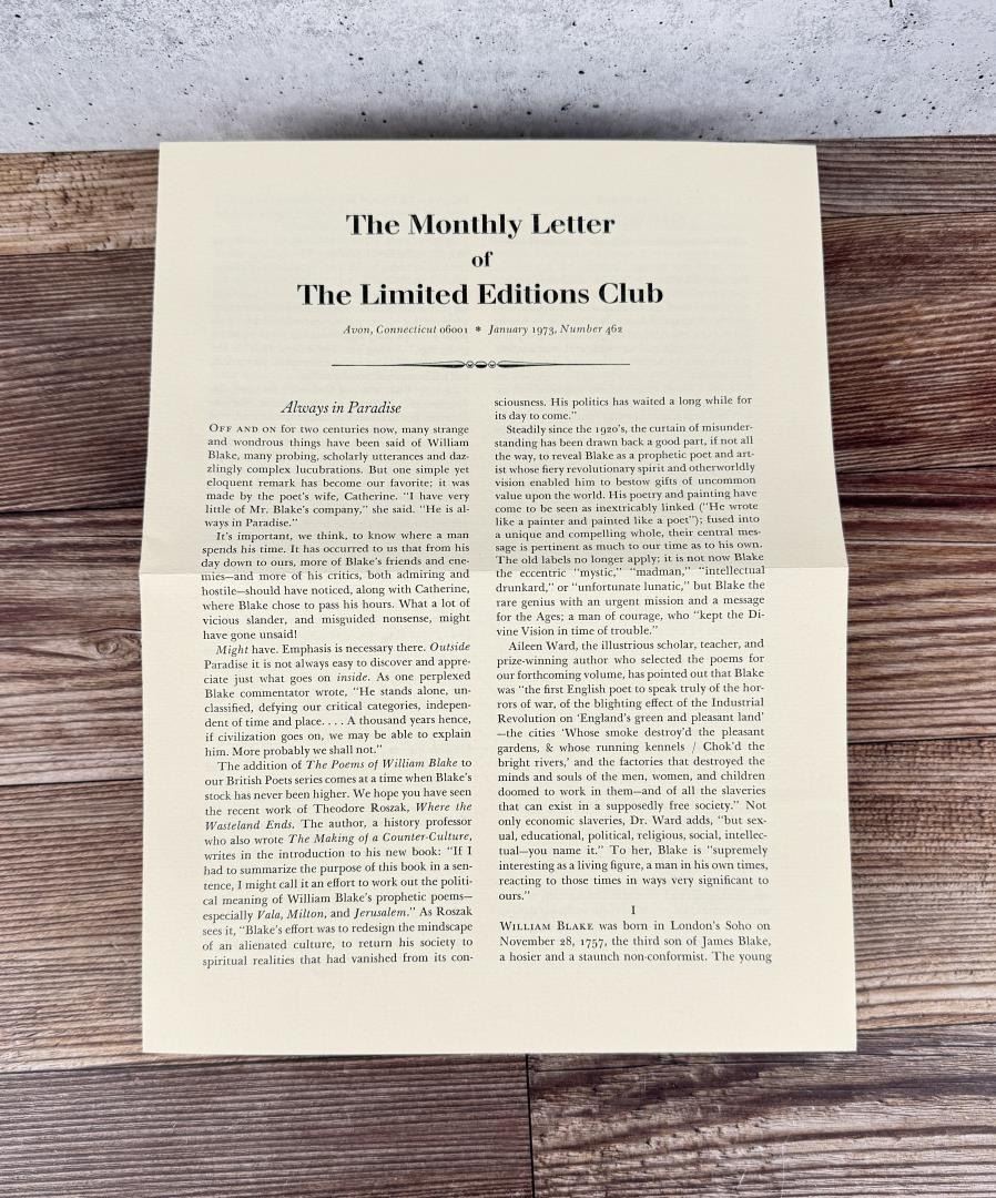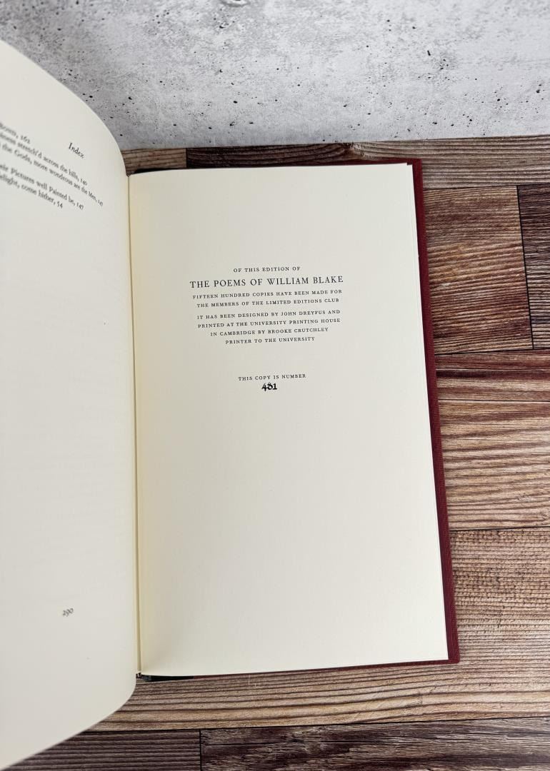 William Blake, 1973. Limited Editions Club 481 of 1500. Provenance- from the estate of former Ford Motor Company CEO Donald E. Petersen.