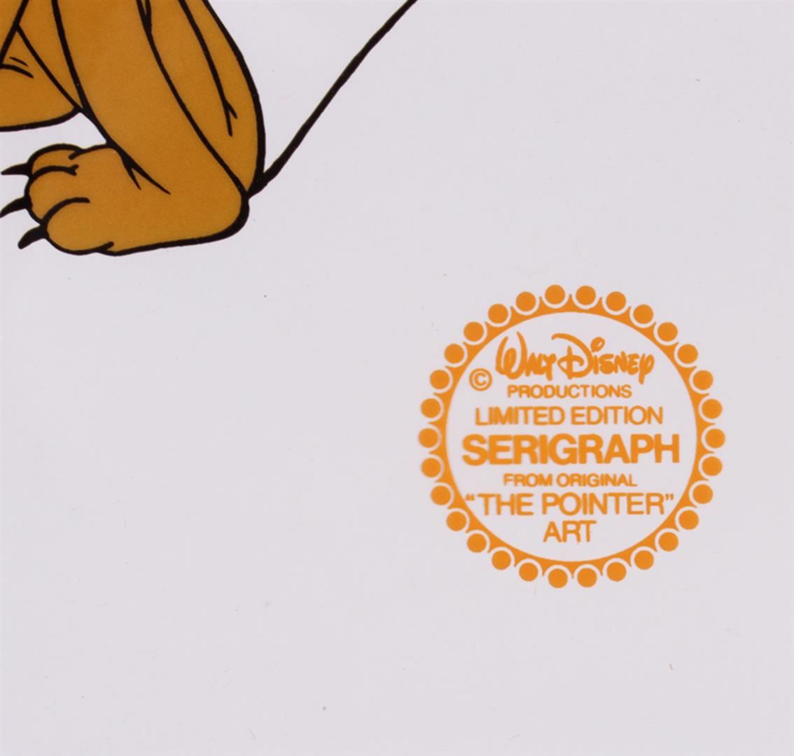 Walt Disney Productions Limited Edition Serigraph From Original "The Pointer" Art. Includes an authentication seal from Walt Disney in the lower right corner. Measures approximately 11x14 inches.