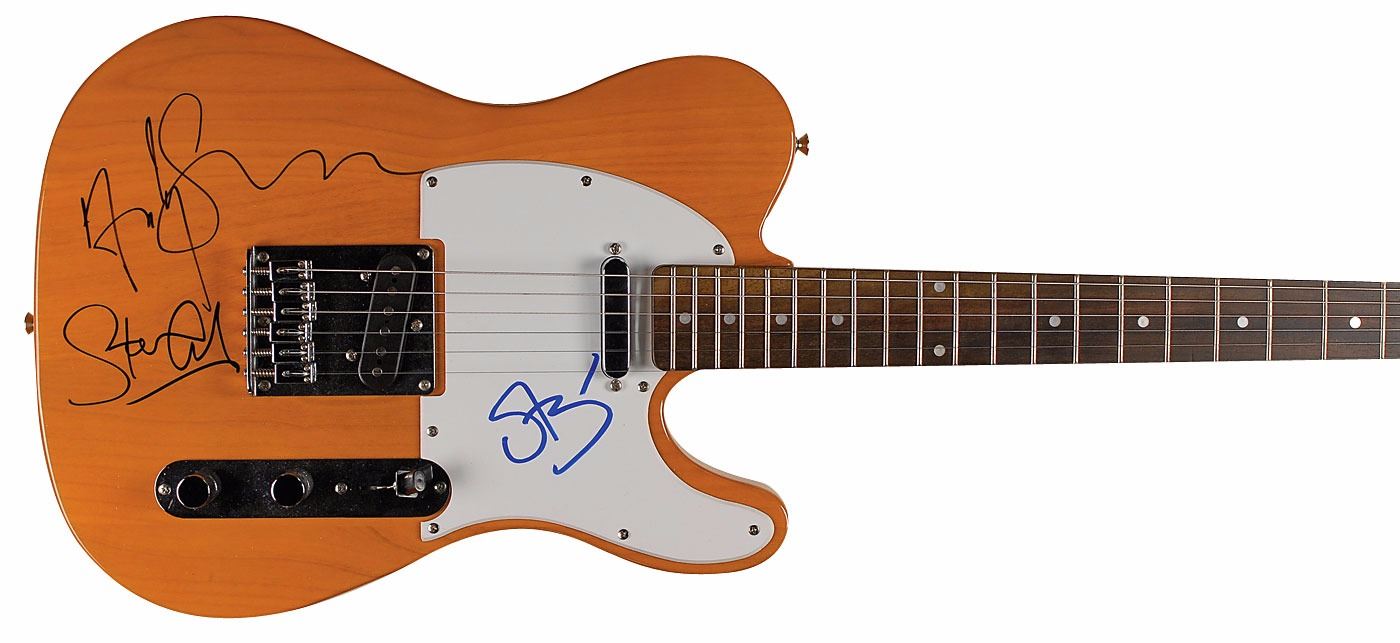 Natural-finish Stedman Pro ‘telecaster-style’ electric guitar, signed on the body in black felt tip by Andy Summers and Stewart Copeland, and on the white pickguard in blue felt tip by Sting. In fine condition.