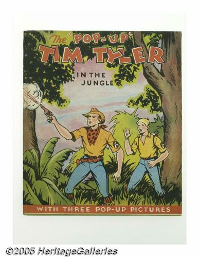 <B>The "Pop-Up" Tim Tyler in the Jungle (Blue Ribbon Books, 1935).</B></I> This 1935 issuance is in unbelievably nice shape. Showing only the slightest edge/corner wear, this is probably as clean and sharp a copy as you'll ever see. It is unfortunate that the lack of current popularity of Tim Tyler has resulted in some collectors overlooking this volume as the Pop-Ups are attractive ones. Has three complete pop-ups. Overall condition is Near Mint. <I>From the Larry Jacobs Collection.</B></I>