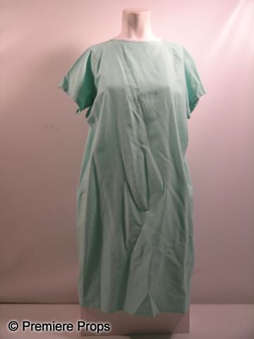 Em (Natasha Calis) screen worn, seafoam green with white ties on the back hospital gown.
