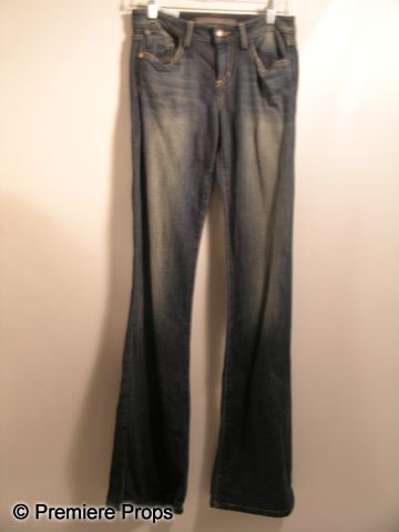 Stephanie (Kyra Sedgwick) screen worn, hero, grey with self tie and brown buttons 'Gryphen' trench jacket, (size S) raspberry three quarter length sleeve scoop neck 'Bordeaux' shirt, (size XS) medium blue denim 'Joe' jeans, (size 25) and tan suede and leather with wooden heel boots. Includes wardrobe tag!