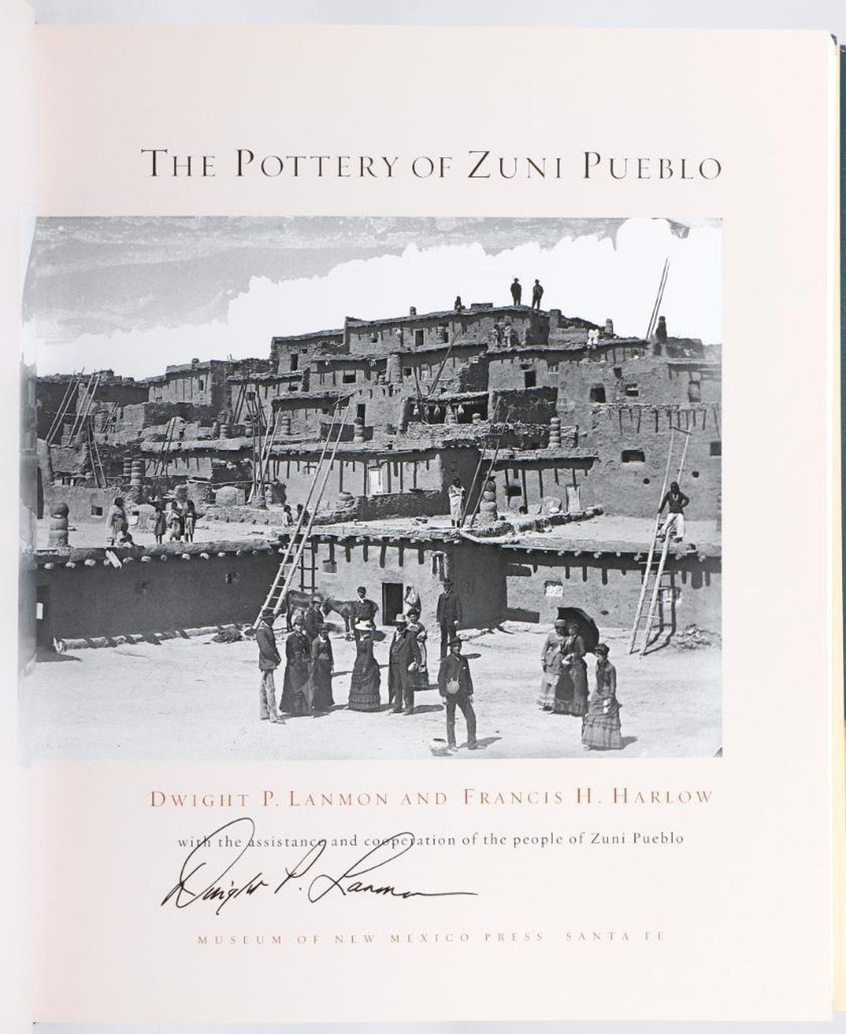 LANMON, DWIGHT P., and FRANCIS H. HARLOW. The Pottery of Zuni Pueblo. Santa Fe: Museum of New Mexico Press, 2008. First edition. 4to. Blue cloth. Signed by Lanmon. Condition: Good-Very Good; this volume is from a well-used research library; some light toning; small edge creases/tears to dust jacket, but overall good.