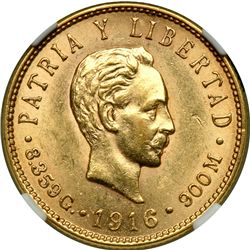 3509 - Cuba. 5 Pesos, 1916. NGC MS62Ira & Larry Goldberg Coins & Collectibles