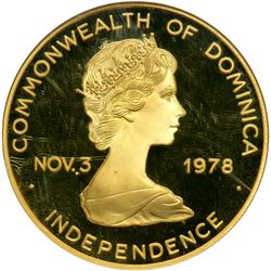 Dominica. 300 Dollars, 1979. Fr-3; KM-19. Weight 0.5555 ounce. Elizabeth II. Reverse: Visit of Pope John Paul II. NGC graded Proof 68.