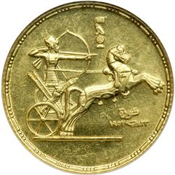 Egypt. 100 Pound, 1955. Fr-40; KM-387. Weight 0.2391 ounce. For the 3rd Anniversary of Revolution. Ramses II in chariot. NGC graded MS-62.