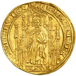 France. Royal d'or, ND. Fr-278. Jean II Le Bon, 1350-1364. Ruler standing under Gothic dais with sceptre. Reverse: Floriated cross, fleur de lis...