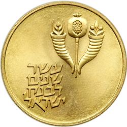 Israel. 50 Lirot, 1964. Fr-4; KM-44. Weight 0.3933 ounce. Bank of Israel - 10th Anniversary. Cornucopia. In original wallet. Choice Brilliant Uncircul