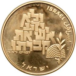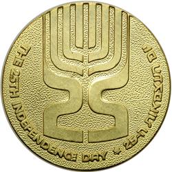 Israel. State Gold Medal, 1973. 35 mm. 28 grams. 22 carat. 3,000 minted. 25th Anniversary of Israel. Uncirculated.
