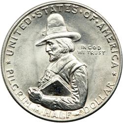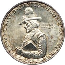 1920 Pilgrim Half Dollar. PCGS graded MS-64 PQ. Nice light golden toning and nearly Gem quality (PCGS # 9359) .