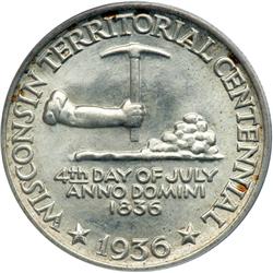 1936 Wisconsin Half Dollar. PCGS graded MS-66. A hint of light tone on both sides, fields and devices booming with luster (PCGS # 9447) .