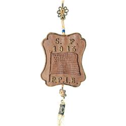 1915. San Francisco Fire Medal. Wood. This piece has a tassel on the bottom and a string on the top. This is the first time we have ever handled a pie