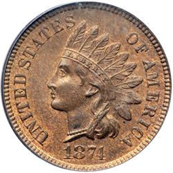 1874 Indian Head Cent. PCGS graded MS-65 Red & Brown. Pop 84; 2 finer in 66RB (PCGS # 2119) .