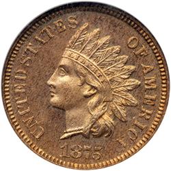 1875 Indian Head Cent. PCGS graded MS-65 Red & Brown. Nice red still visible. Pop 75; 3 finer in 66RB (PCGS # 2122) .