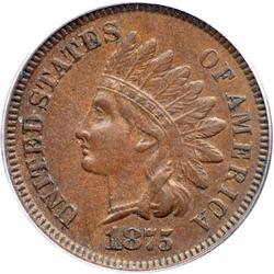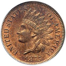 1875 Indian Head Cent. PCGS graded MS-63 Brown. Partial mint red visible (PCGS # 2121) .