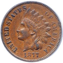 1877 Indian Head Cent. PCGS graded AU-53. Nice details for this key date, the coin is detailed on the feathers and carries a sharp LIBERTY at the head