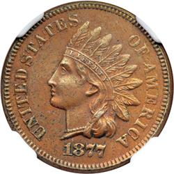 1877 Indian Head Cent. NGC graded Unc Details, improperly cleaned. Well struck and a popular Key Date that is always in demand.
