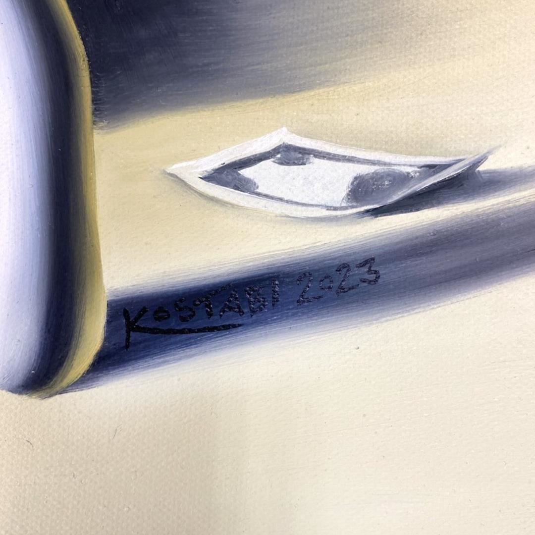 "The Price of Prosperity" is an original oil painting on canvas by Mark Kostabi, hand signed by the artist. This piece comes custom framed. Includes Certificate of Authenticity. Measures approx. 33.5" x 27.5" (frame), 23.5" x 17.5" (image).