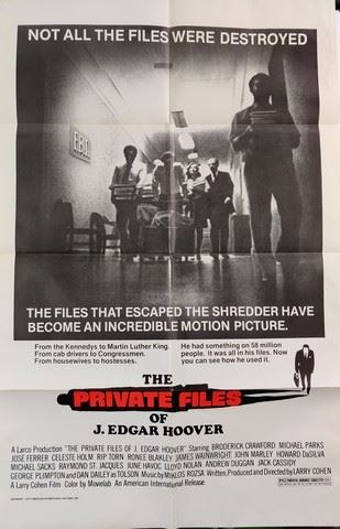 The Private Files of J. Edgar Hoover (American International Pictures, 1977). One Sheet. Starring Broderick Crawford and James Wainwright. There are fold lines and creases. Very Fine. (27" X 41").