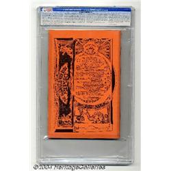 <B>The Profit #1 (Go Broke Press, 1966) CGC VF+ 8.5 White pages.</B></I> One of the first recognized Underground cartoonists was Joel Beck; here's one of his early books, subtitled <B>The Alienated Baby Report</B></I>. This recently slabbed copy currently is unsurpassed in CGC's census report, which features only one other copy of this scarce (especially in higher grades) comic. Listed in Jerry Weist's 2000 <B>Comic Art Price Guide</B></I> with a FN value of $150 and a NM value of $250. <BR><BR><B>Important notice:</B> Heritage usually auctions material at the rate of 200-250 lots per hour. On some occasions eBay Live bid software or the Internet may not be able to keep up with the pace of the auction. We recommend placing a realistic absentee bid now as insurance to avoid disappointment. Occasionally the auctioneer may eliminate or reject an eBay Live bid, and the auctioneer may also reopen a lot after the close of the eBay live bidding (usually because we missed an audience bid), and may reject your bid even if it shows you as the winning bidder. By bidding via eBay Live, you agree that Heritage may award the lot to another bidder at its sole discretion under the circumstances described above or any other reasonable circumstances. Since eBay bids are not shown to us until we open the lot on the floor, we treat those bids just like floor bids. In most cases the floor responds before the eBay bid is presented to us, due to Internet lag time, so for consistency we have made it a policy that floor bids are always considered first over tie eBay live bids. Also please note that all Heritage lots purchased through eBay Live carry a 20% Buyer's Premium. Please make sure you read the Terms and Conditions before you bid.