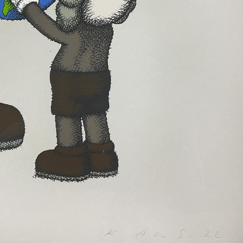 "The Promise" is a limited edition screenprint on paper by KAWS, numbered 205/500 and hand signed by the artist. This piece comes custom framed. Includes Letter of Authenticity. Measures approx. 25.5" x 29.5" (frame), 16" x 20" (image).