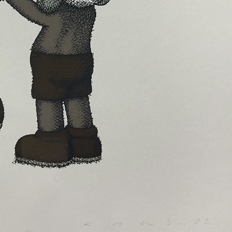 "The Promise" is a limited edition screenprint on paper by KAWS, numbered 319/500 and hand signed by the artist. This piece comes custom framed. Includes Letter of Authenticity. Measures approx. 25.5" x 29.5" (frame), 16" x 20" (image).