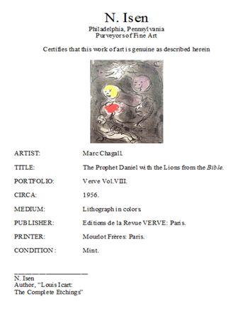 Lithograph in colors By Marc Chagall Verve Vol. VIII. CIRCA: 1956