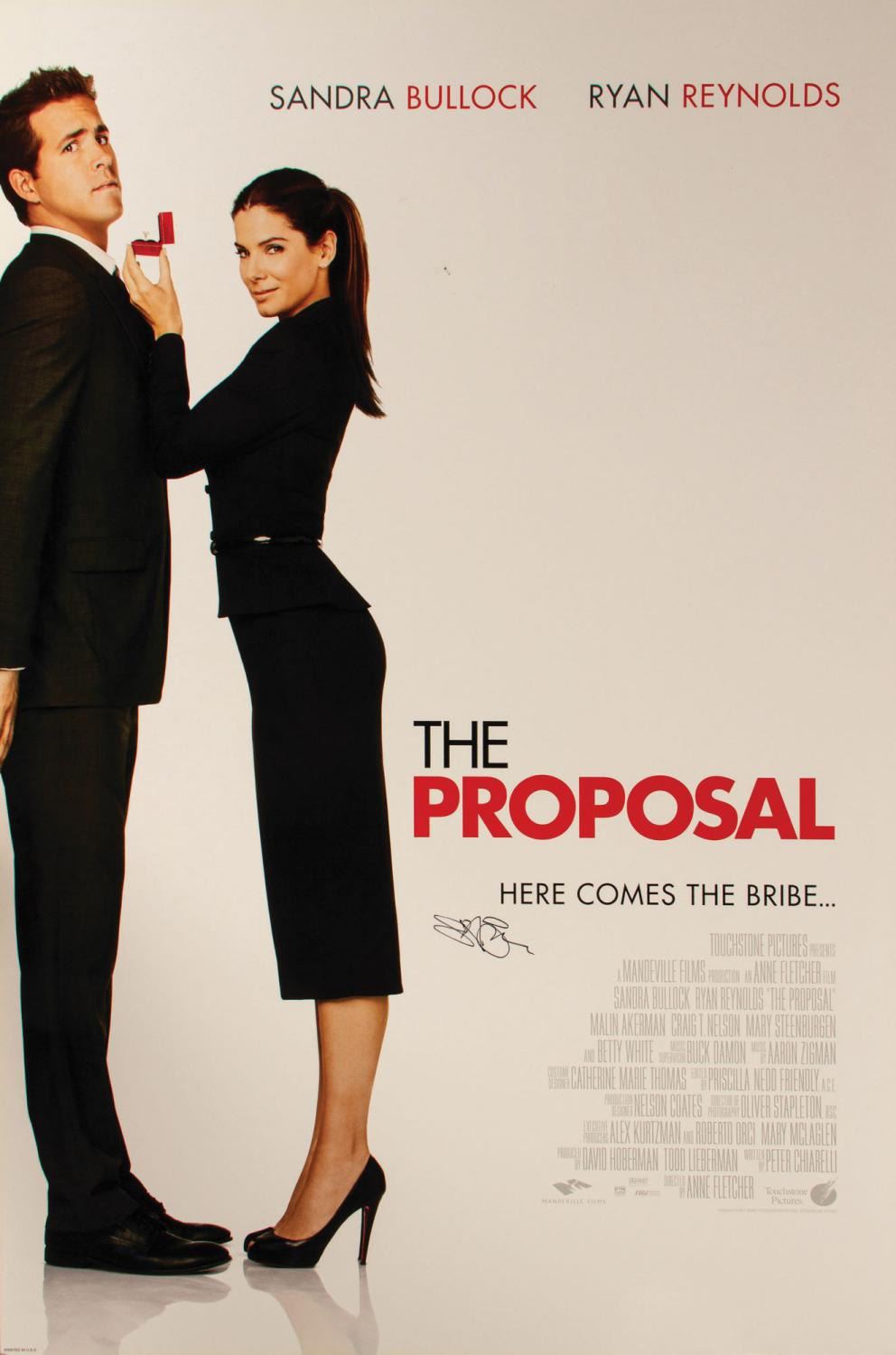 (Touchstone, 2009) A one sheet poster for The Proposal, signed by actress Sandra Bullock. The poster was used and signed at a Broadcast Film Critics Association event, and measures 39.75"x26.75". The poster is backed with foamcore and is in very good condition with minor edge-wear and a couple of small residue spots near the upper center.