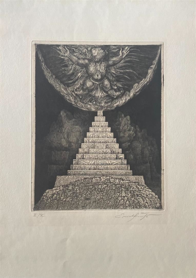The Pyramid of the Night by Fuchs, Ernst. Limited Hand Signed Etching. signs of handling or age. Dimensions: 21 x 15. Good Condition.