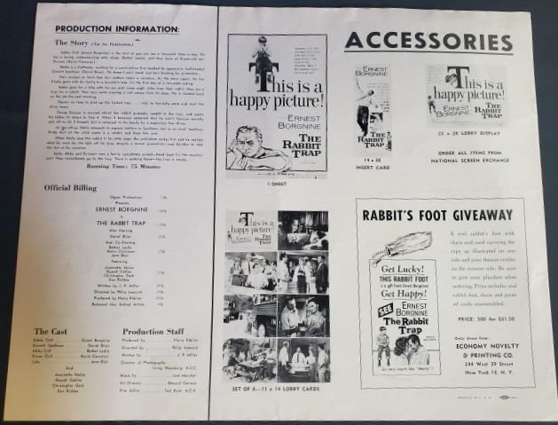 "The Rabbit Trap" 1959 Press Book United Artist Pressbook 1959 The Rabbit Trap Ernest Borgnine, Davi