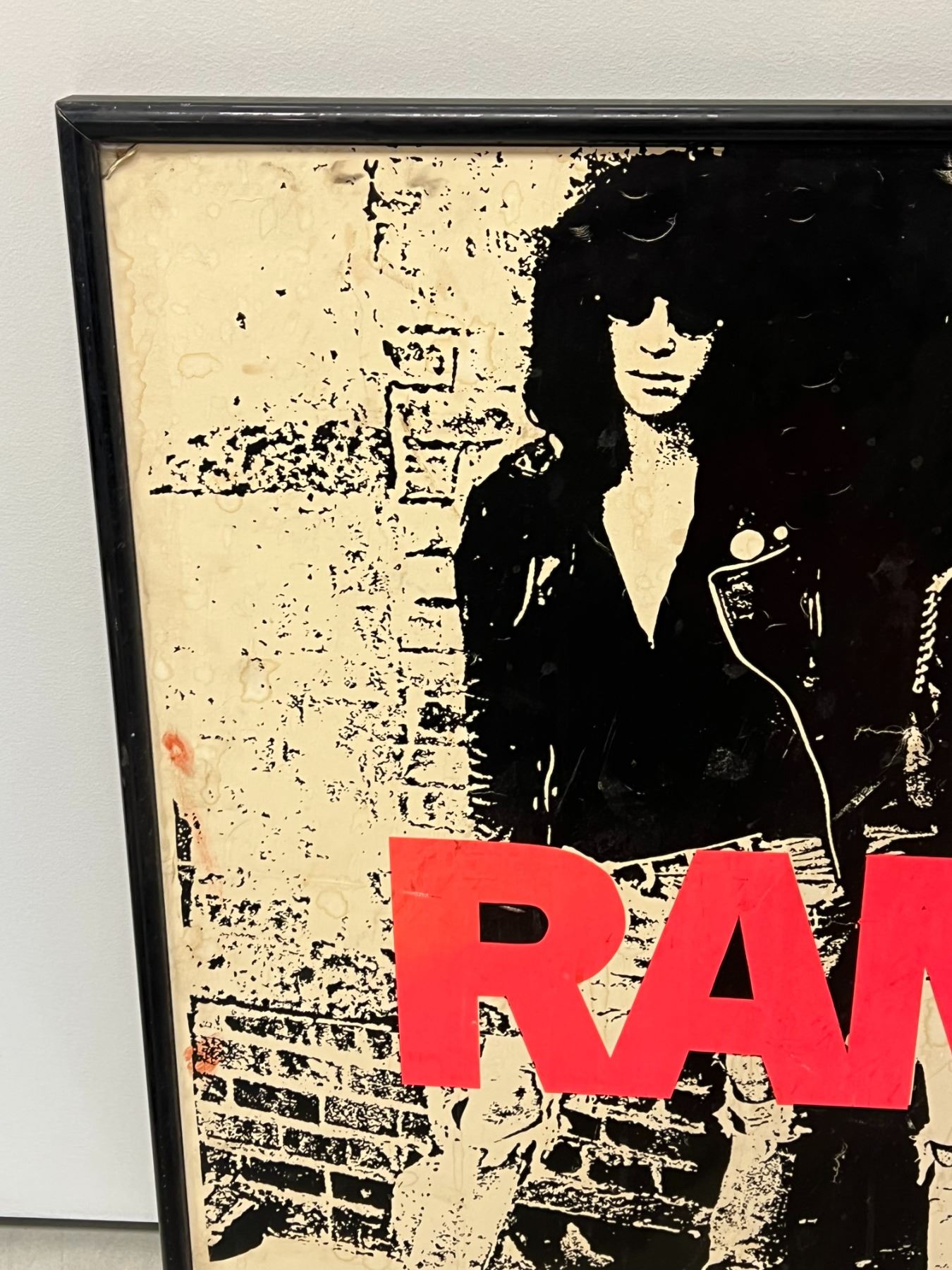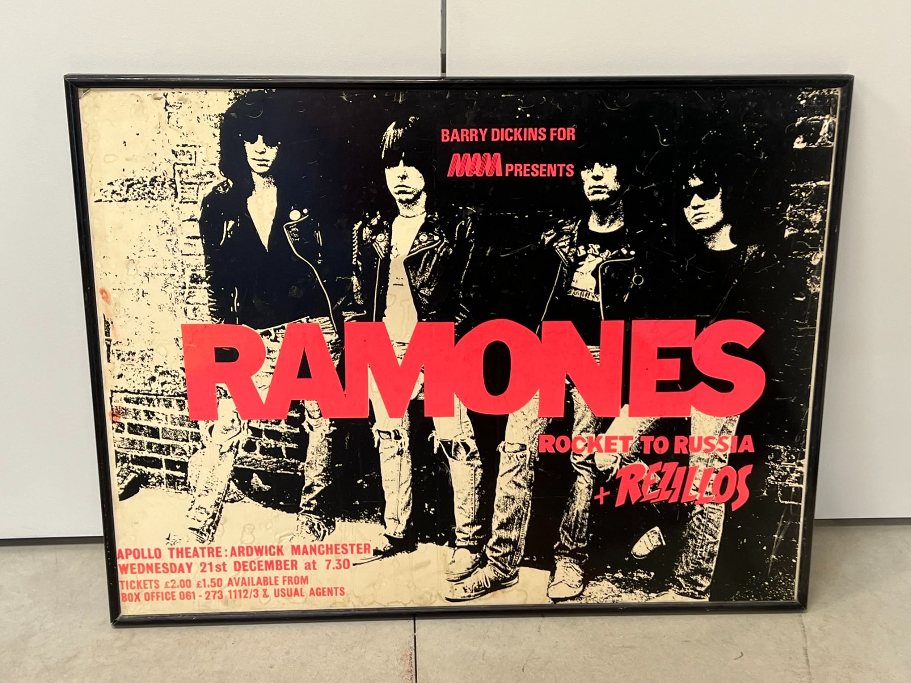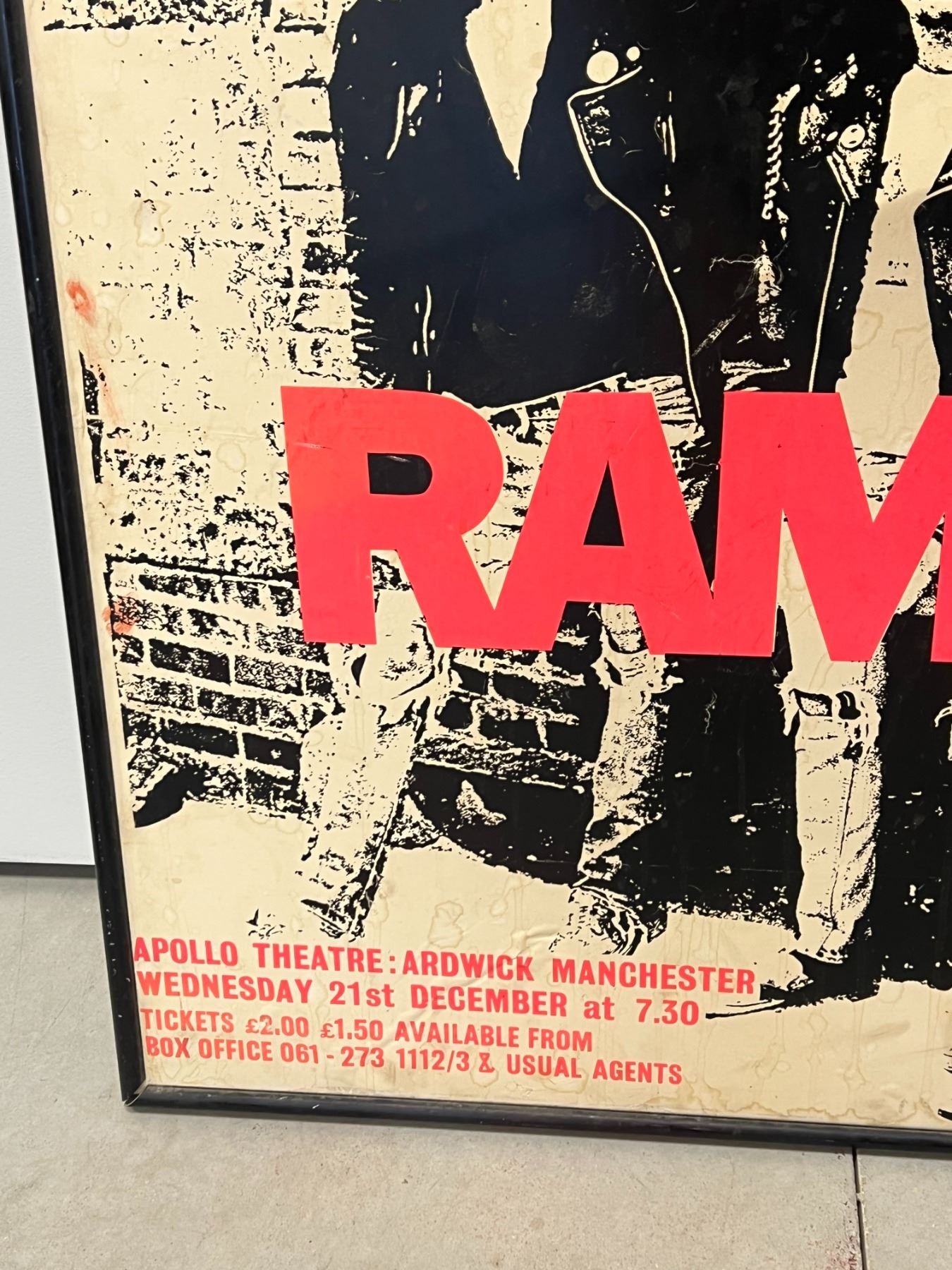 The Ramones Apollo Theater UK Promo Poster - Large (frame approx: 38.75x30"). Poster has issues including some staining, scratches, snags etc. May be a poster glued to cardboard but not positive. Please view all photos for condition.
