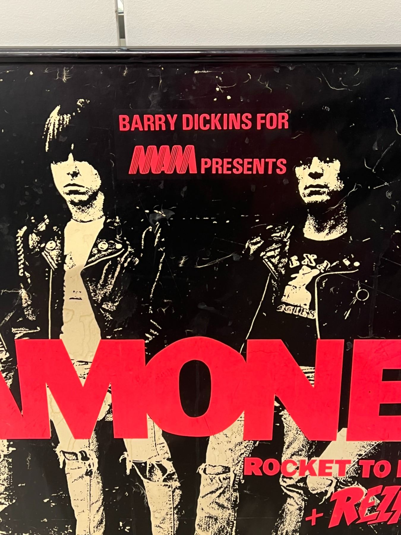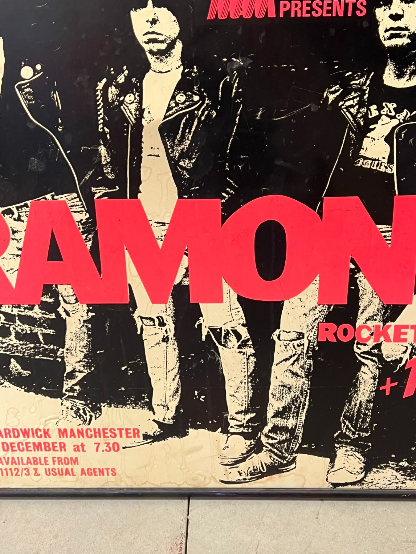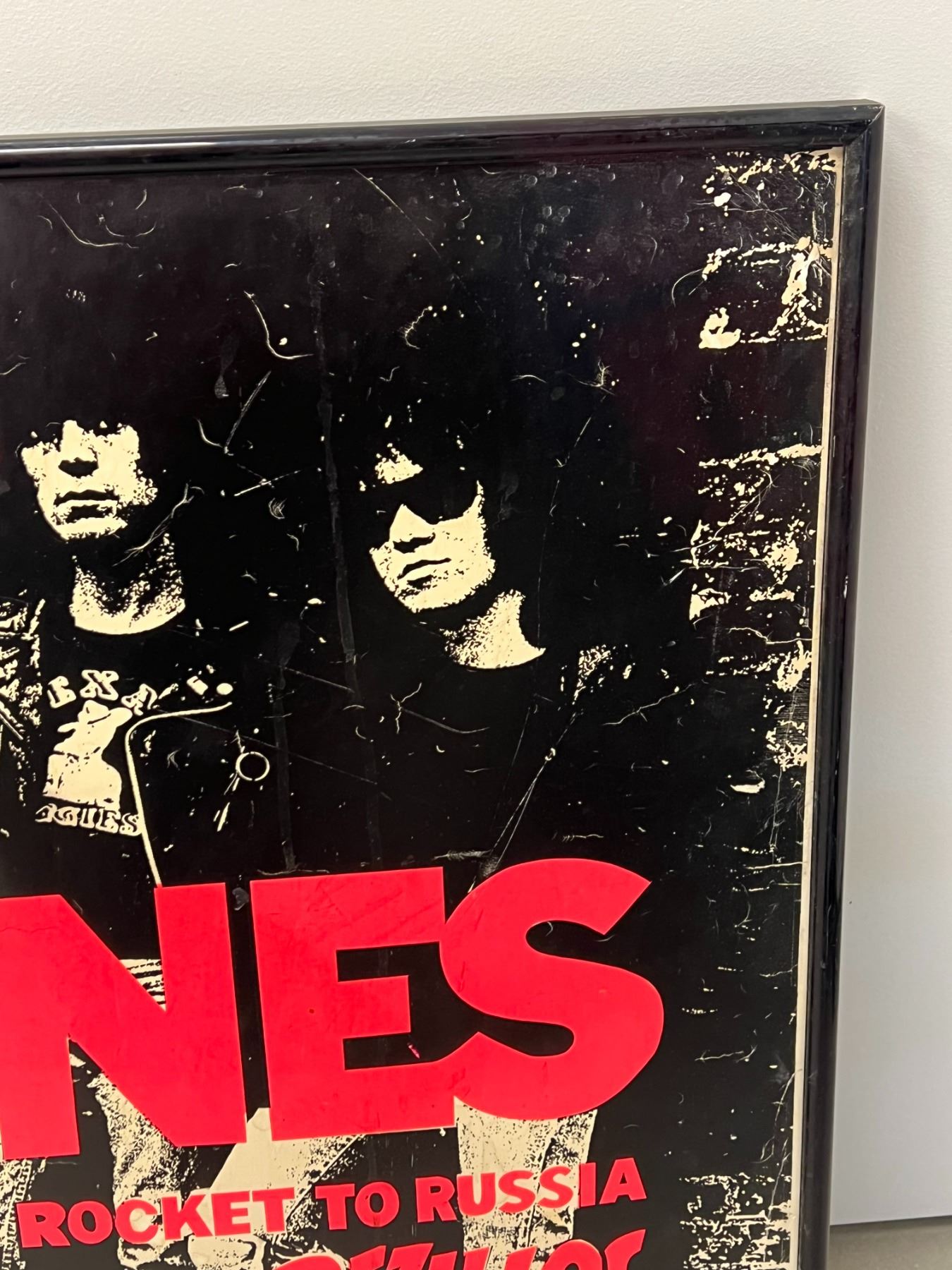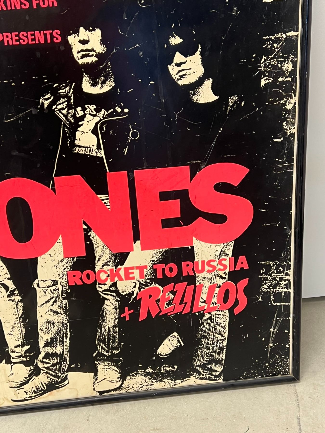 The Ramones Apollo Theater UK Promo Poster - Large (frame approx: 38.75x30"). Poster has issues including some staining, scratches, snags etc. May be a poster glued to cardboard but not positive. Please view all photos for condition.