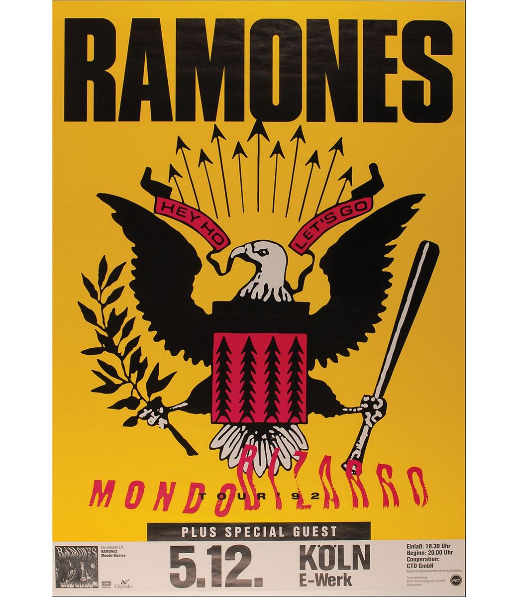 Color 23 x 33 promotional poster for their 1992 Mondo Bizarro tour stop in Cologne, Germany. In fine condition, with a few scattered edge dings and creases.
