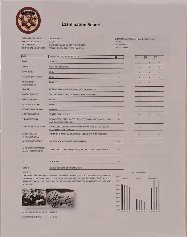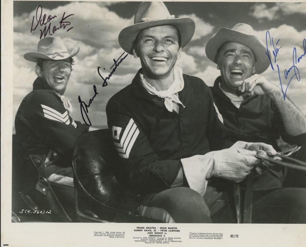Sergeants 3 signed movie photo autographed by Frank Sinatra, Dean Martin and Peter Lawford. 8x10 inches. GFA Authenticated. HL4931