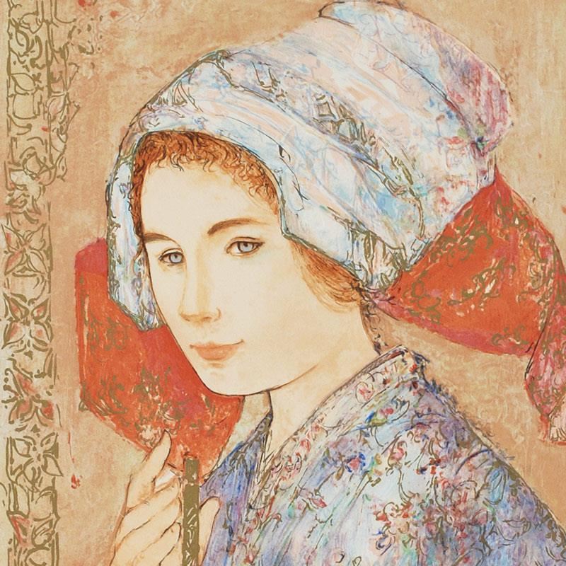 The Recorder by Hibel (1917-2014). Wild lines and muted colors make Edna Hibel's art stand out in any room. "The Recorder" is a limited edition serigraph on paper, numbered and hand signed by Hibel. Includes Certificate of Authenticity! Measures approx. 20" x 30" (with border) 15" x 26" (image).